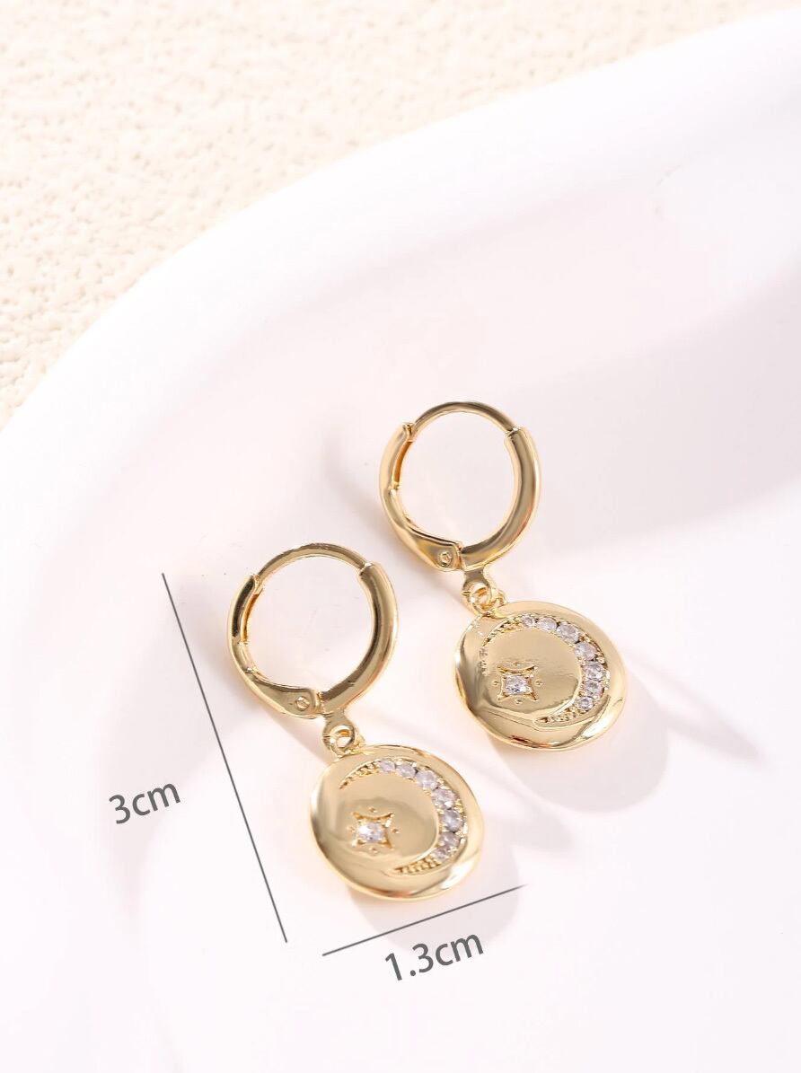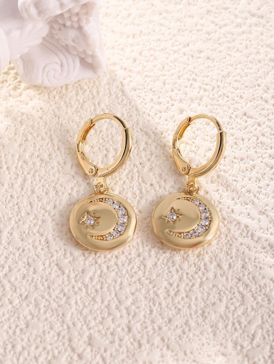 月と星のデザインが魅力的なクリスタル装飾のフープピアス。
