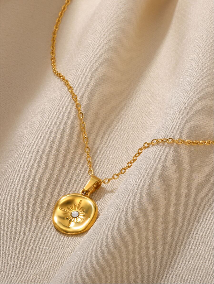 ゴールドのスタープレートペンダントネックレス、長さ調整可能。
