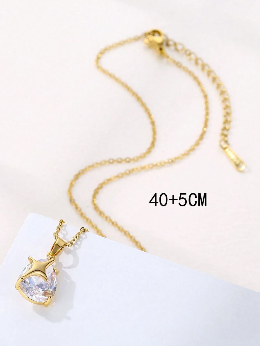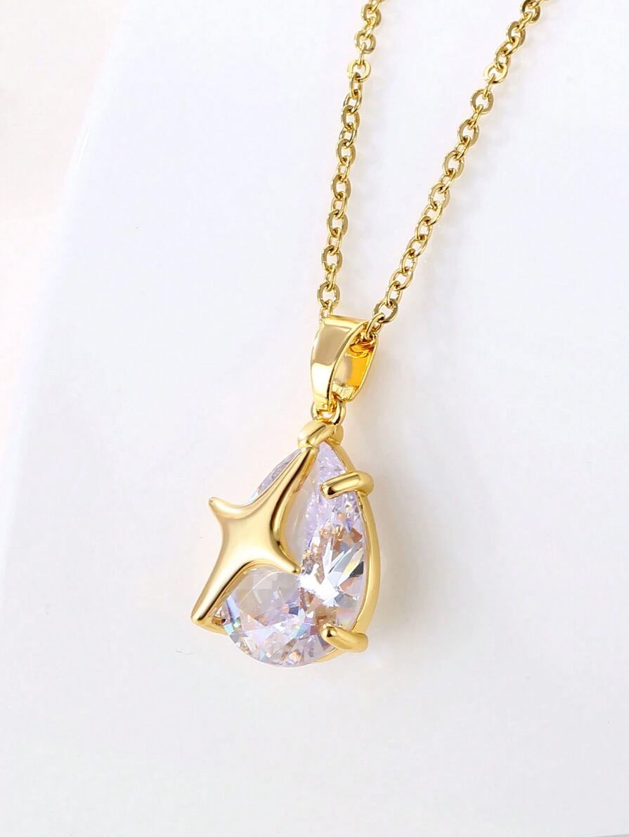 ティアドロップ型のクリスタルが輝く金メッキネックレス。