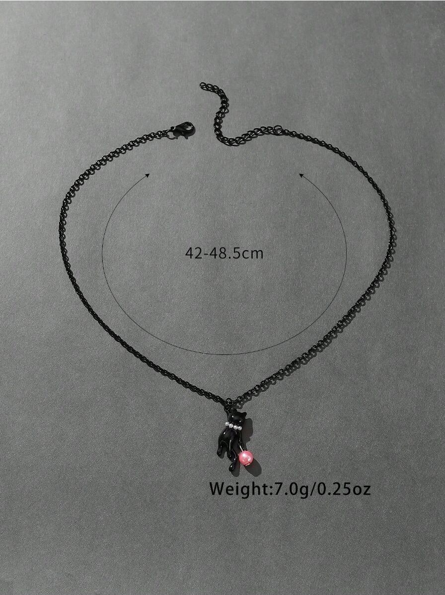 黒猫のデザインにピンクのボールが特徴的なネックレス。