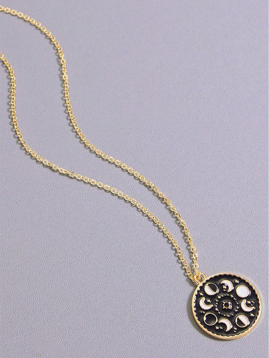月の満ち欠けモチーフが特徴的な金属製ネックレス。