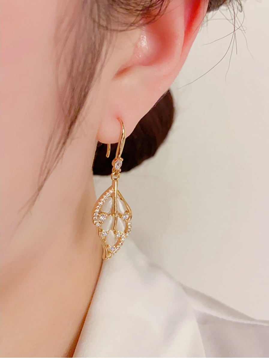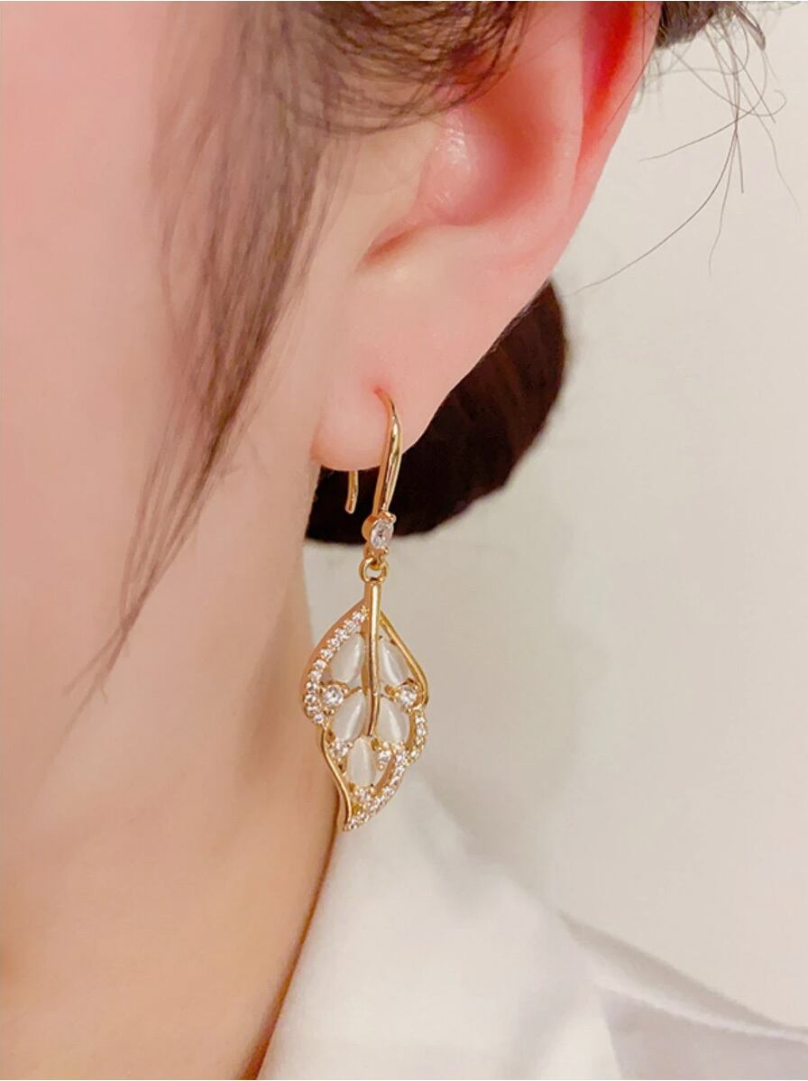 - デザイン: リーフの形状が繊細に作られており、光の加減によって変わるキャッツアイストーンが、耳元を華やかに彩ります。どのシーンでも存在感を放つ魅力的なアクセサリーです。