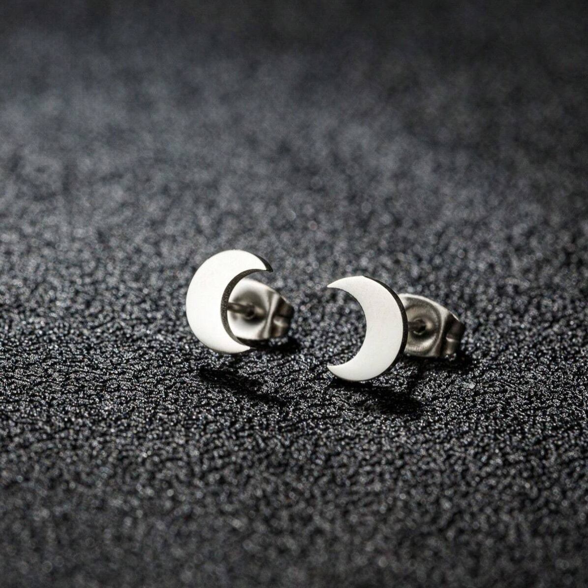 シルバーの三日月のデザインのスタッドピアス。