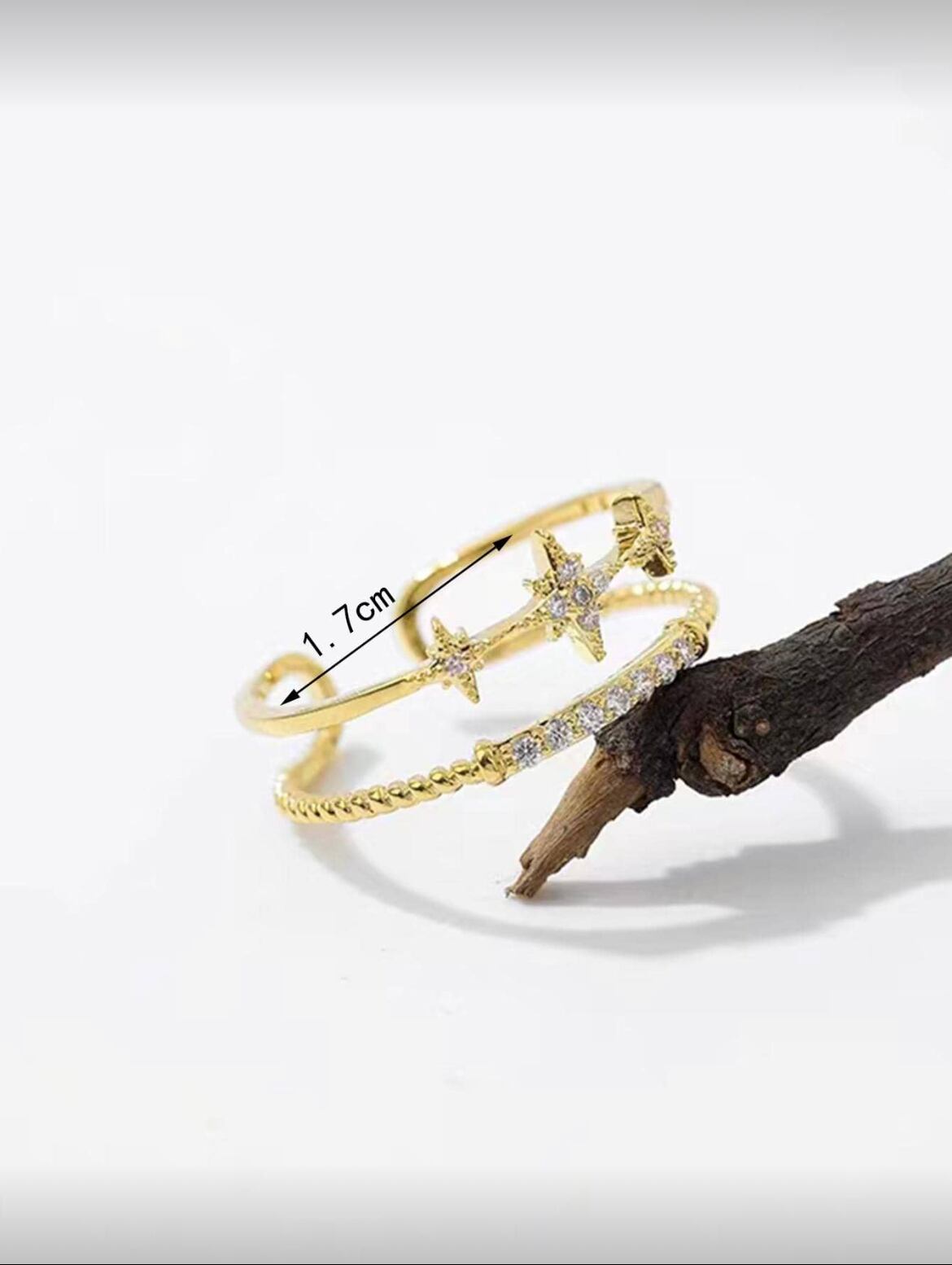 - デザイン: 星形の装飾が施されたオープンリング