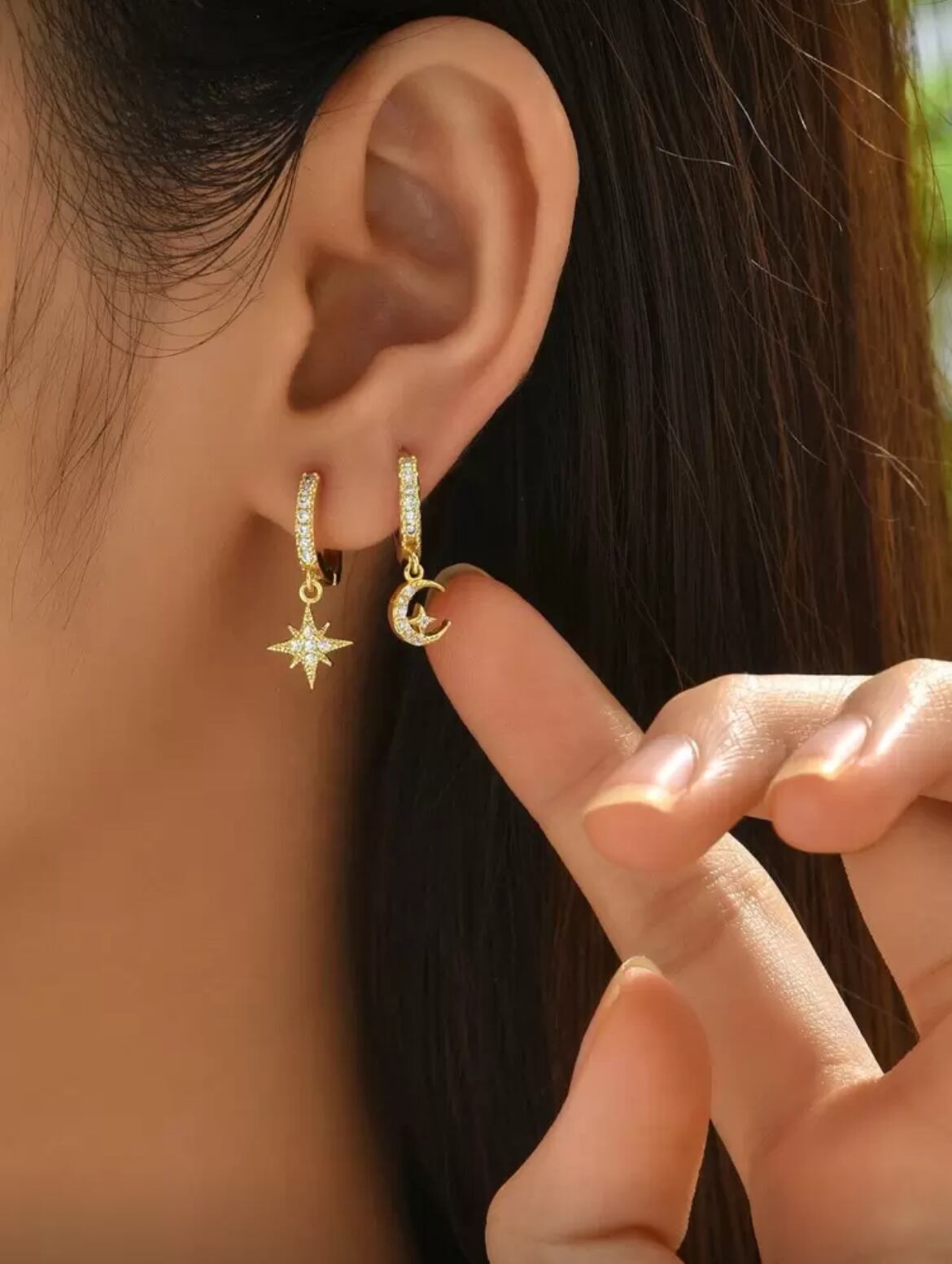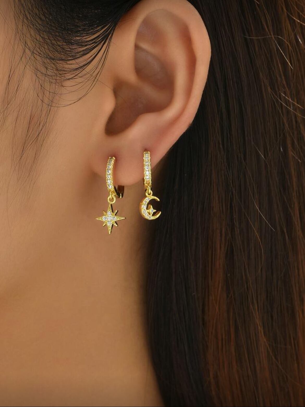 星と月をモチーフにした美しいデザインが耳元を華やかに演出し、デイリーコーディネートにも特別なお出かけにもぴったりなアイテムです。
