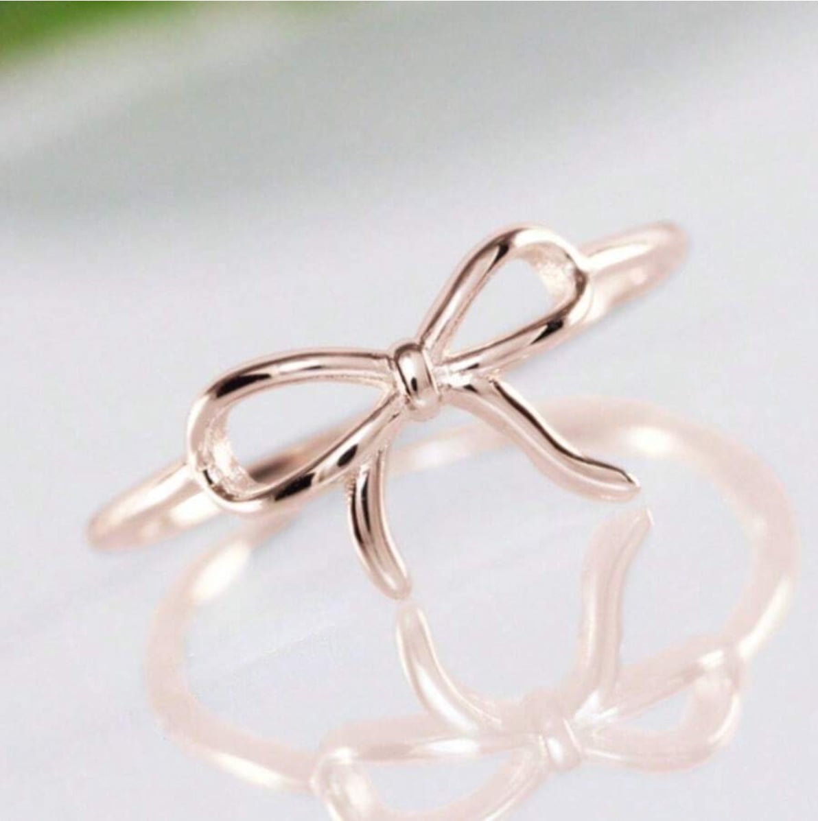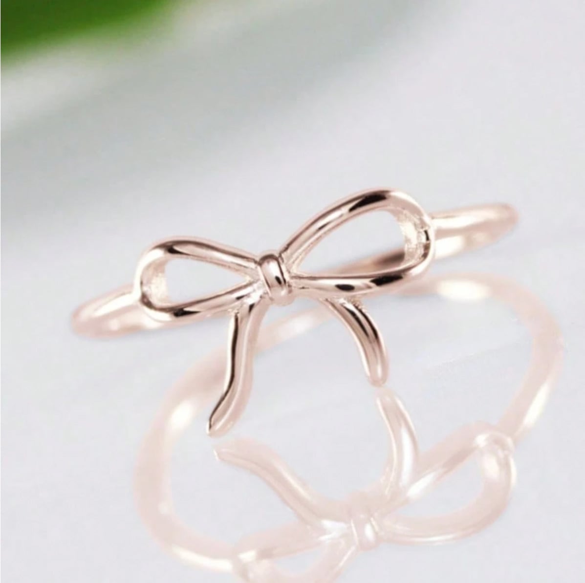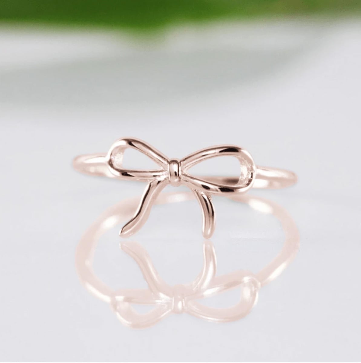 蝶々結びのリボンモチーフが施された美しいローズゴールドリングが、指元を華やかに演出します。デイリーコーディネートにも特別なお出かけにもぴったりな一品です。